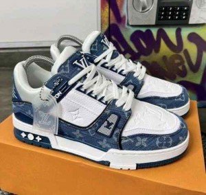 Louiss Vuittonn LV Monogram Trainer Blue White With Accessorie